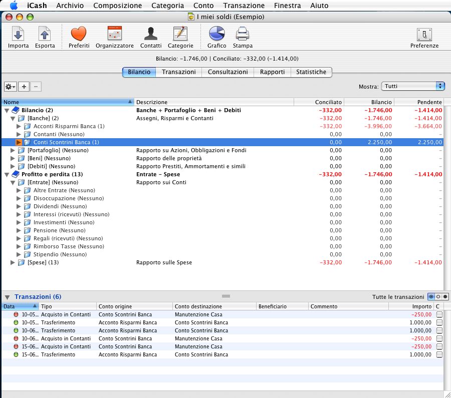 iCash è uno strumento facile da usare, ricco di comandi, e multifunzione Gestore delle Finanze personali per Macintosh e Windows, realizzato per aiutarti a controllare ogni tipo di transazione monetaria. iCash può servire dai piccoli bisogni di contabilità, sia per uso privato, o per piccole società, associazioni, liberi professionisti, imprenditori, o semplicemente per essere usato a casa, tenendo traccia delle entrate, spese e transazioni Bancarie in poco tempo. Con pochi clic potrai creare i tuoi conti e creare le transazioni in pochi minuti.