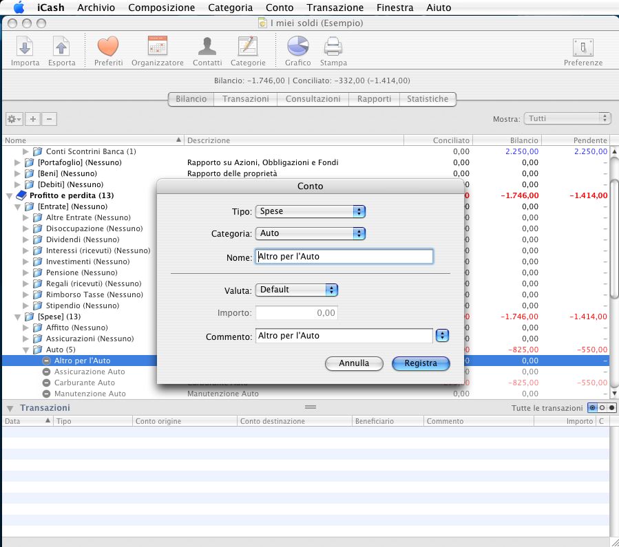 iCash è un software pensato per tenere sotto controllo le tue finanze personali, tenendo traccia per te delle entrate, spese, crediti, debiti e transazioni bancarie. Facile da usare, creando i conti di cui hai bisogno e puoi spostare le operazioni fra questi! Non devi neanche avere conoscenze di contabilità o preoccupartene! Le tue finanze dipendono in gran parte d una buona organizzazione che ti lascia capire qual’è la fonte delle tue entrate e dove i soldi vengono spesi.